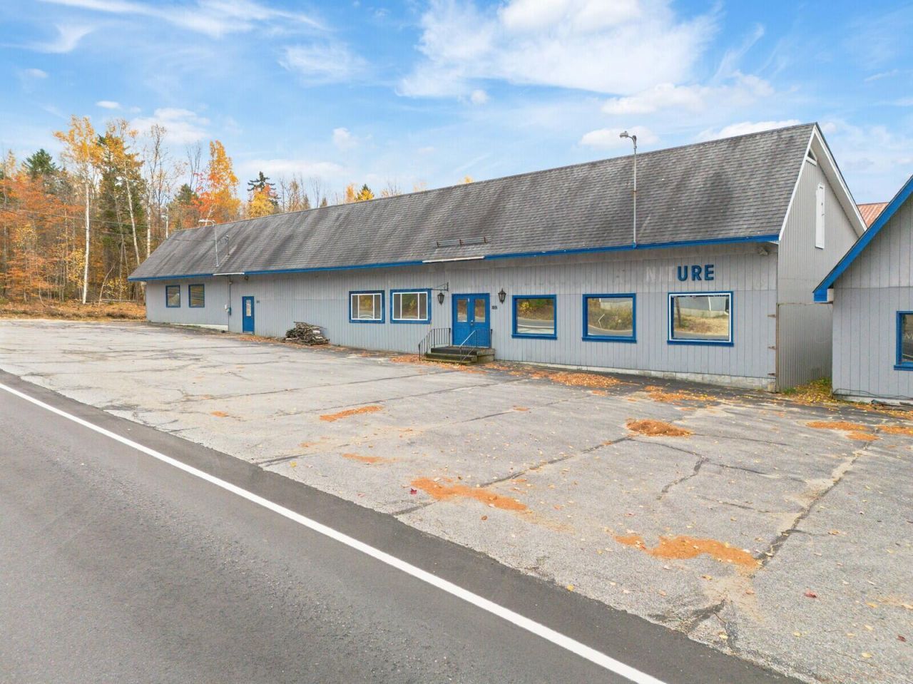 Commercial complex featuring five connected buildings, with over 20,000 square feet of floor space and 9' ceilings, supplied by both 200 and 800 amp power services. The paved parking area will accommodate at least 10 cars, with more space at the side and rear of the property. Supplimenting the main building is a kitchenette, office, living room 2 bedrooms and half bath, in addition to a 2000 sf storage barn. Situated on the main route from Rumford to Roxbury, the location is equidistant from Farmington, Rangeley, and Lewiston/Auburn, all roughly an hours drive away. Zoning allows for a wide variety of possible uses, including retail, lodging, professional offices, storage units, and industrial/manufacturing.