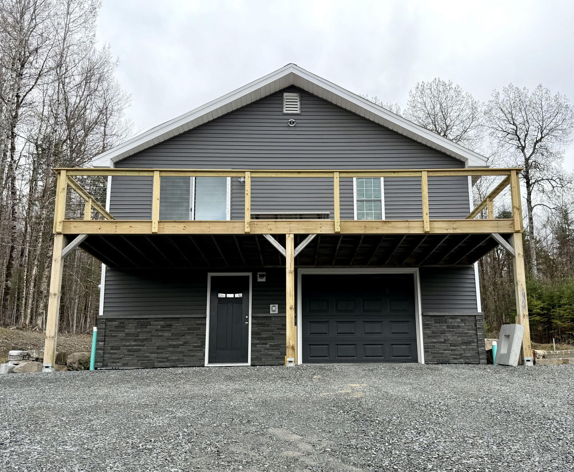 Welcome to 166 Station Rd--a beautifully renovated home in Maine's stunning Katahdin Region! Completely renovated from the ground up, every detail has been thoughtfully updated for modern living. Enjoy brand new insulation, sheetrock, flooring, appliances, bathrooms, boiler, siding, windows, electrical panel, and garage door. The foundation has been fully dug out and sealed, keeping the lower level dry and comfortable. This charming 3-bedroom, 1.5-bath home offers privacy and wooded views from every window. Renovations include an open layout with a spacious living room and designer kitchen featuring a huge island, all new Thomasville cabinetry and brand new appliances. Down the hall, you'll find three nicely sized bedrooms and a large bathroom with a convenient laundry center. Head downstairs to a generous rec room with a pellet stove and an additional half bath. The outdoor space offers a beautiful slice of Maine's great north woods--ideal for relaxing by the firepit or enjoying summer meals on the stylishly updated front deck with sleek cable wire railing.Don't miss this opportunity to move right into a home that feels brand new!