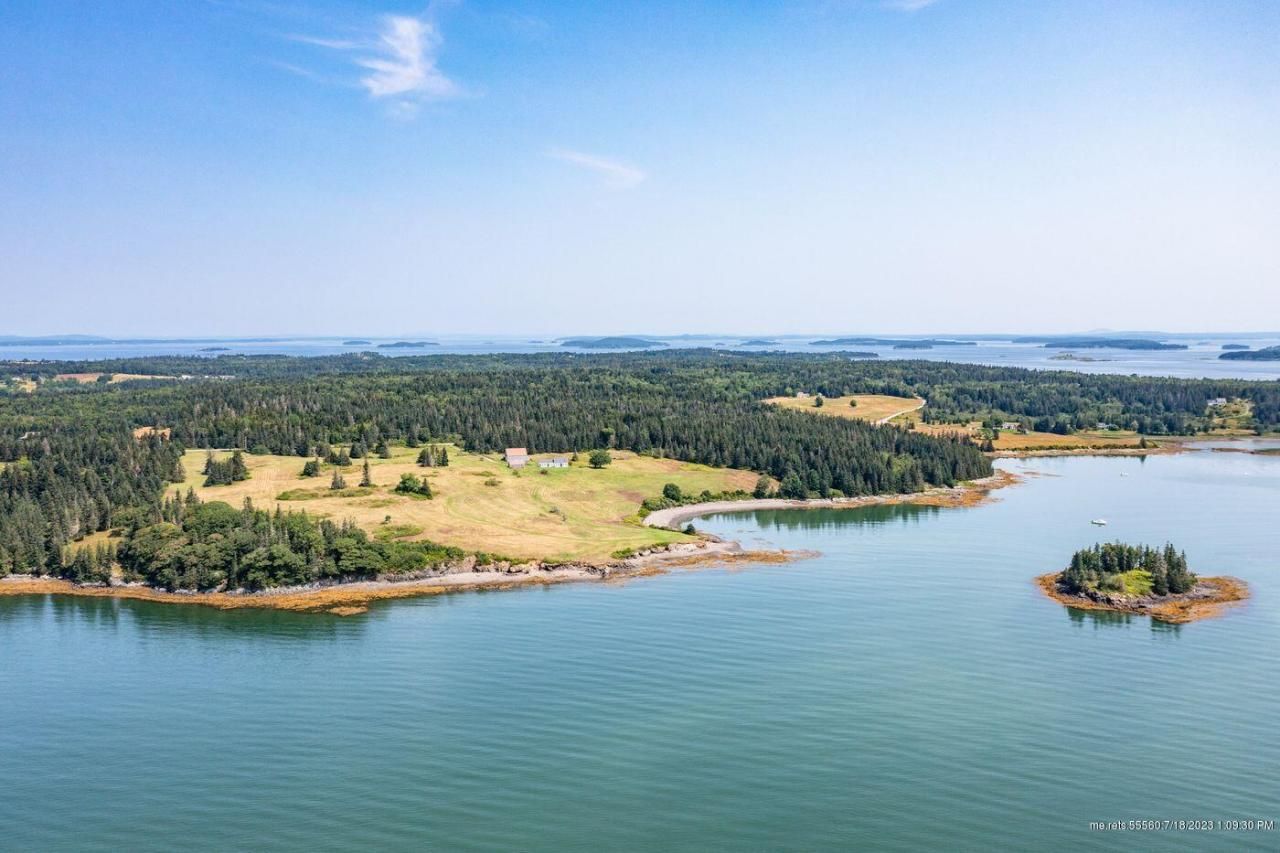 Stone Cove Farm is a classic saltwater farm with historic buildings, 267± acres of fields and woods, and spectacular views over the eastern end of the Fox Islands Thorofare, the ''Sparkplug'' lighthouse, Stimpson Island, and across East Penobscot Bay to Isle au Haut. Sited on a knoll with southerly views over the fields to the water, the house is a mid-nineteenth century extended Cape farmhouse with charming period details. The seasonal home has three bedrooms, a bunk room; and two historic barns complement the residence. Approximately 3,400± feet of varied and accessible ocean frontage includes a grassy point of land, dramatic rocky shore, and a pebble beach. A small island, ideal for picnics and children's exploration, is also included. The property offers the potential for additional residential development, a deep-water dock, and/or a return to agricultural pursuits. Extensive due diligence available.