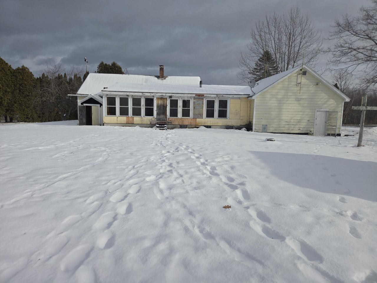Handymen and House Flippers take notice!!! This little diamond in the rough is back on the market, through no fault of its own. This home has solid bones but needs some TLC. It is completely functional the way it sits. There is a huge, insulated bonus room off the kitchen which could be added as living space. This bonus room is also on a foundation. There is so much potential to this house. It was originally a 3 bedroom but a wall was removed to make it a 2 bedroom. Add the wall back in and you are back to a 3 bedroom. Extra large attached garage with 2 outbuildings. The large back yard could easily be fenced in for your pets. Less than 30 mins to either Bangor or Dover-Foxcroft this home is on the main road that is very well maintained in the winter.